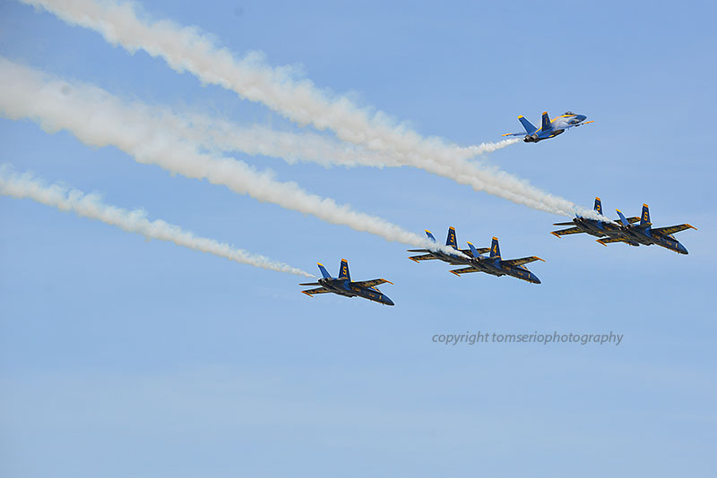 At the end of the aerial display, the team forms up then one by one breaks-away to circle back for landing.